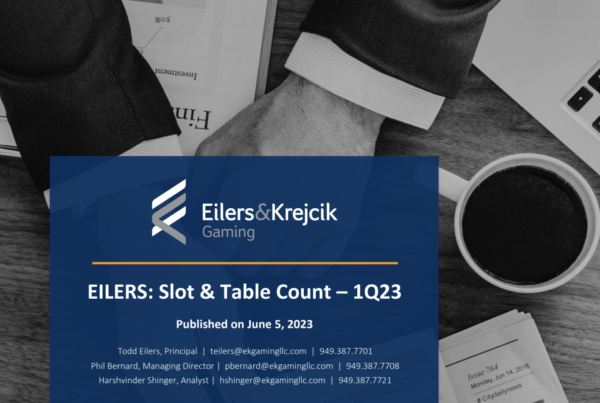 Eilers & Krejcik Gaming 0 June 5, 2023 EILERS: Slot & Table Count – 1Q23 At the end of 1Q23, we estimate the total installed base of slot machines and…Read More