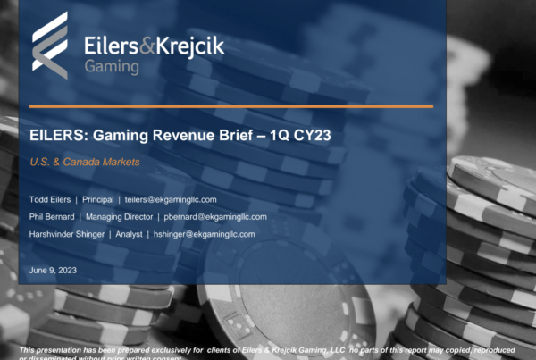 Eilers & Krejcik Gaming 0 June 9, 2023 N. America Revenue Brief – 1Q23 Based on reported figures and our proprietary estimates, we estimate total U.S. & Canada Gaming…Read More