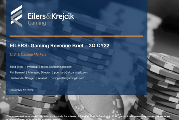 Eilers & Krejcik Gaming 0 December 12, 2022 EILERS: N. America Revenue Brief – 3Q22 Based on reported figures and our proprietary estimates, we estimate total U.S. & Canada Gaming…Read More