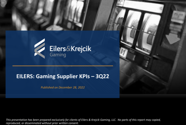 Eilers & Krejcik Gaming 0 December 28, 2022 EILERS: Gaming Supplier KPI’s – 3Q22 We estimate total U.S. & Canada B2B EGM revenue increased +23% y/y and +11% q/q…Read More