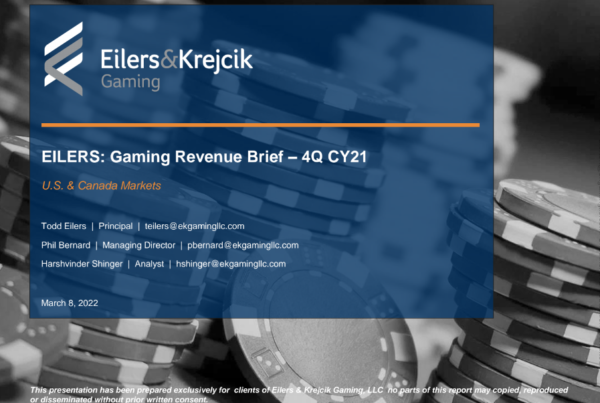 Eilers & Krejcik Gaming 0 March 8, 2022 EILERS: N. America Revenue Brief Based on reported figures and our proprietary estimates, we estimate total U.S. & Canada Gaming…Read More