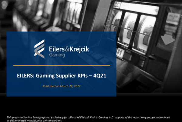 Eilers & Krejcik Gaming 0 March 29, 2022 EILERS: Gaming Supplier KPI’s – 4Q21 We estimate total U.S. & Canada B2B EGM revenue increased +47% y/y and +6% q/q…Read More