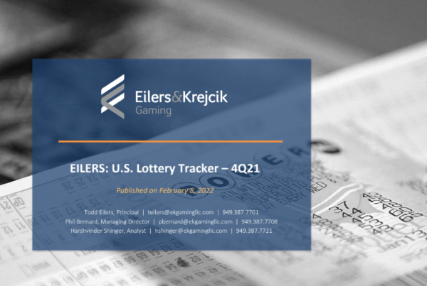Eilers & Krejcik Gaming 0 February 8, 2022 EILERS: U.S. Lottery Tracker – 4Q21 In 4Q21, total U.S. lottery sales increased +9% y/y to $25.6 billion across the 46…Read More