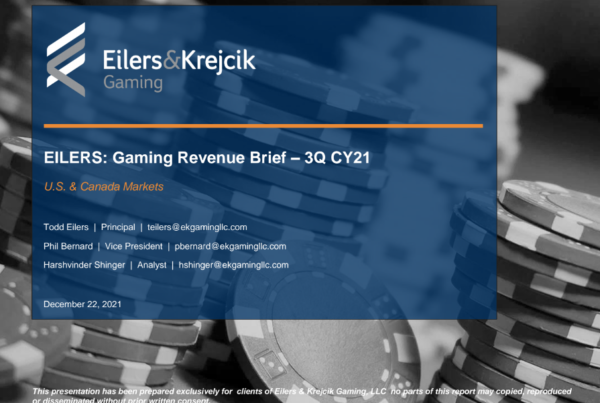 Eilers & Krejcik Gaming 0 December 22, 2021 EILERS: N. America Revenue Brief – 3Q21 Based on reported figures and our proprietary estimates, we estimate total U.S. & Canada Gaming…Read More