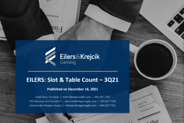 Eilers & Krejcik Gaming 0 December 16, 2021 EILERS: Slot & Table Count – 3Q21 At the end of 3Q21, we estimate the total installed base of slot machines and…Read More
