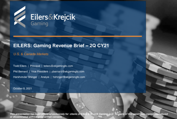 Eilers & Krejcik Gaming 0 October 8, 2021 EILERS: N. America Revenue Brief – 2Q21 Based on reported figures and our proprietary estimates, we estimate total U.S. & Canada Gaming…Read More