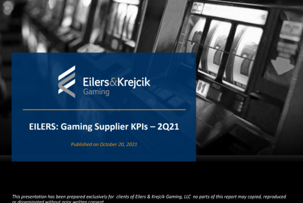 Eilers & Krejcik Gaming 0 October 20, 2021 EILERS: Gaming Supplier KPIs – 2Q21 We estimate total U.S. & Canada B2B EGM revenue increased +289% y/y and +33% q/q…Read More