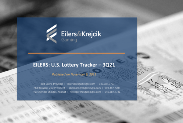 Eilers & Krejcik Gaming 0 November 9, 2021 EILERS: U.S. Lottery Tracker – 3Q21 In 3Q21, total U.S. lottery sales increased +7% y/y and decreased -5% q/q to $25.6…Read More