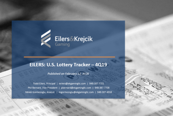 Eilers & Krejcik Gaming 0 February 12, 2020 EILERS: U.S. Lottery Tracker – 4Q19 Quarterly report tracking U.S. monthly retail lottery sales, multi-state jackpot trends, iLottery sales, new vendor…Read More