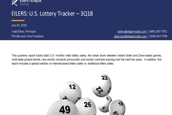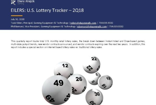 Eilers & Krejcik Gaming 0 November 7, 2018 EILERS: U.S. Lottery Tracker – 3Q18 Quarterly report tracking U.S. monthly retail lottery sales, multi-state jackpot trends, iLottery sales, new vendor…Read More