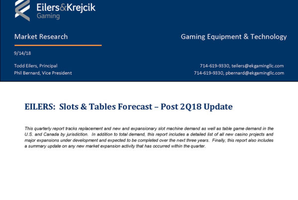 Eilers & Krejcik Gaming 0 October 1, 2018 EILERS: Slot & Table Demand Forecast Quarterly report that includes a summary of replacement and new & expansionary slot and table…Read More