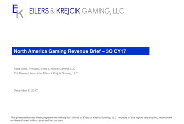 Eilers & Krejcik Gaming 0 December 12, 2017 EILERS: N. America Gaming Revenue Brief – 3Q17 This quarterly report provides a quick glance at some top level gaming revenue trends as…Read More