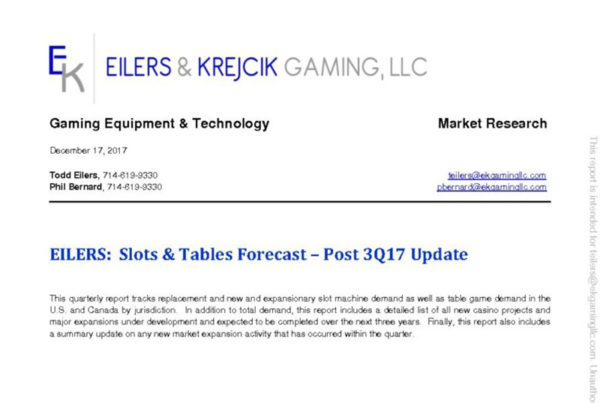 Eilers & Krejcik Gaming 0 December 26, 2017 EILERS: Slot & Table Demand Forecast – 3Q17 Quarterly report that includes a summary of replacement and new & expansionary slot and table…Read More