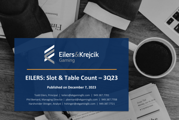 Eilers & Krejcik Gaming 0 December 7, 2023 EILERS: Slot & Table Count – 3Q23 At the end of 3Q23, we estimate the total installed base of slot machines and…Read More