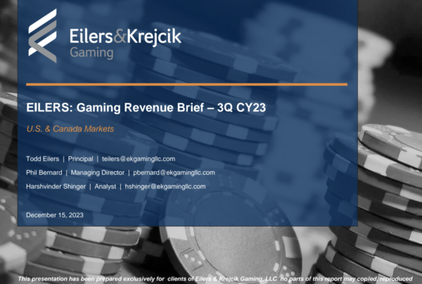 Eilers & Krejcik Gaming 0 December 15, 2023 N. America Revenue Brief – 3Q23 Based on reported figures and our proprietary estimates, we estimate total U.S. & Canada Gaming…Read More