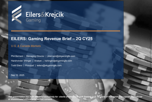 Eilers & Krejcik Gaming 0 September 12, 2025 EILERS: N. America Revenue Brief – 2Q25 Based on reported figures and our proprietary estimates, we estimate total U.S. & Canada Gaming…Read More