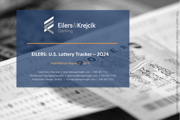 Eilers & Krejcik Gaming 0 August 2, 2024 EILERS: U.S. Lottery Tracker – 2Q24 iIn 2Q24, total U.S. lottery sales increased +3% y/y but decreased -4% q/q to $26.7…Read More