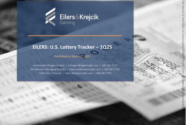 Eilers & Krejcik Gaming 0 May 12, 2025 EILERS: U.S. Lottery Tracker – 1Q25 In 1Q25, total U.S. lottery sales declined -6% y/y and -5% q/q to $26.2 billion…Read More